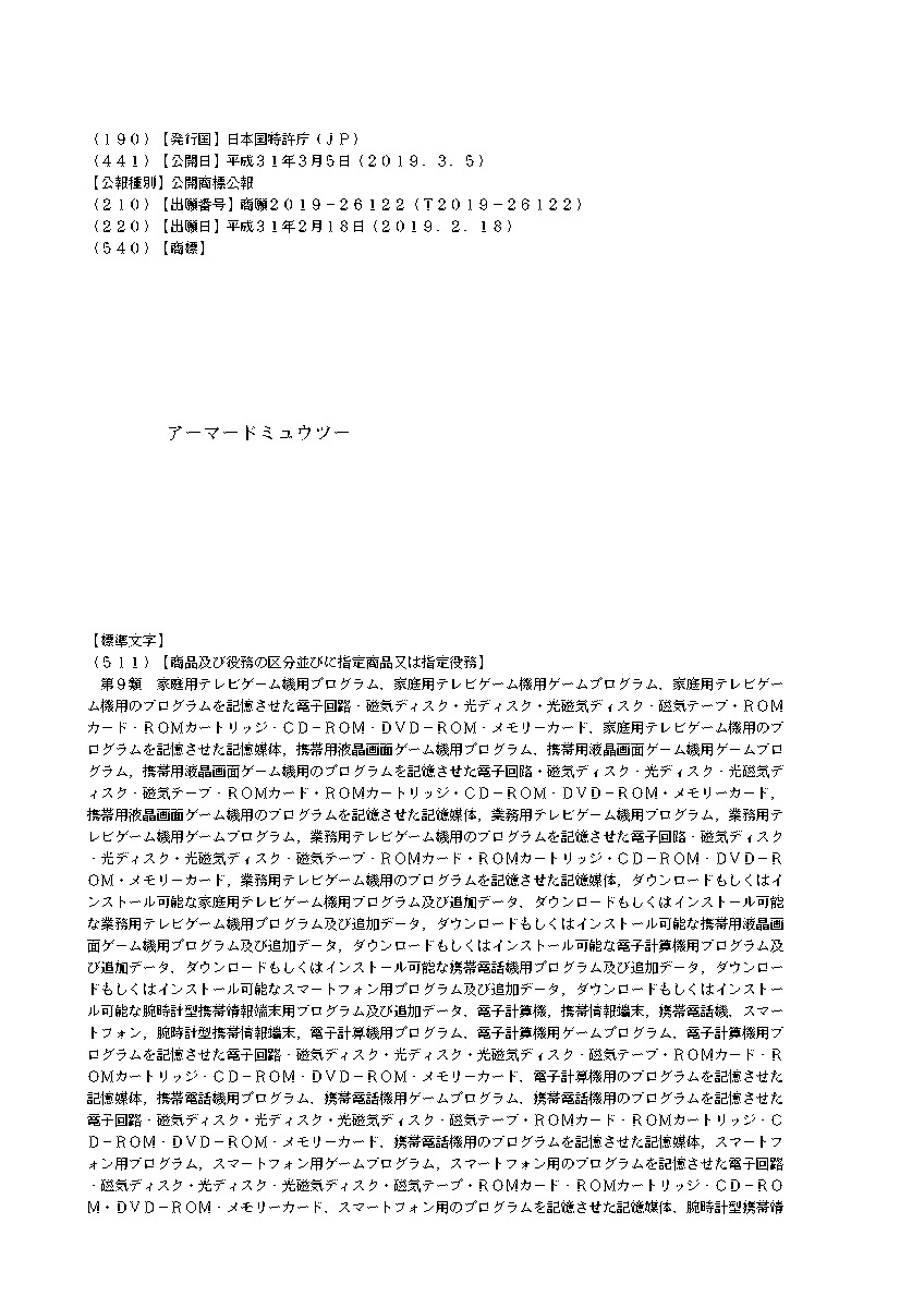 Dokument potwierdzający znak towarowy Armored Mewtwo (Opancerzony Mewtwo) w Japonii.