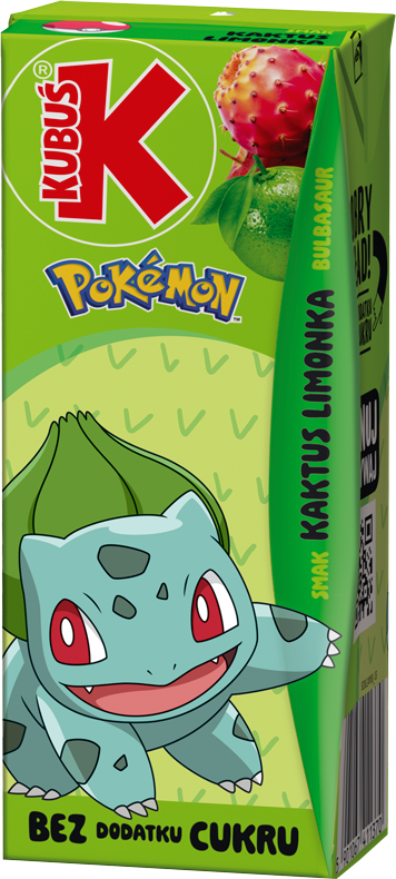 • Bulbasaur – jabłko, kaktus, limonka – orzeźwiający mix z nutą egzotyki, który zachwyci najmłodszych.