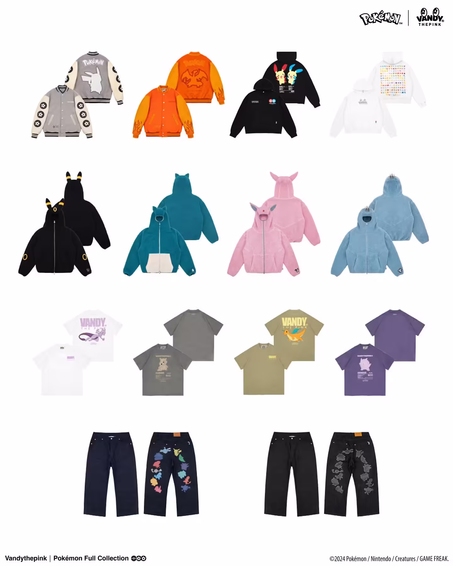 Firma z Wirginii, VANDYTHEPINK, zaprezentowała wyjątkową kolekcję stworzoną we współpracy z Pokémon. W skład 14-elementowej linii wchodzą oryginalne, streetwearowe stylizacje inspirowane pierwszymi 151 Pokémonami oraz kilkoma ulubieńcami z późniejszych generacji. Kolekcja przyciąga wzrok m.in. bejsbolówkami z motywami Charizarda oraz bluzami z kapturem z Eeveelucjami.