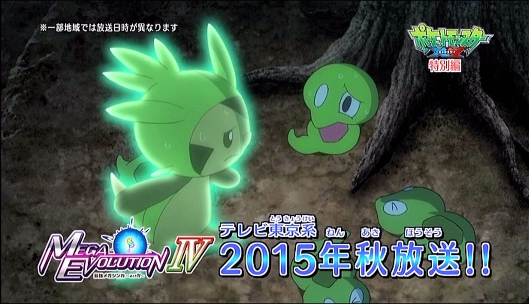 Na japońskim koncie Pokémon w serwisie YouTube zamieszczono zwiastun nadchodzącego specjalnego odcinka o Mega Ewolucjach (IV). Pojawia się w nim nowy Pokémon, przypominający zieloną kropelkę. Nie zostały jeszcze podane szczegóły na temat odcinka ale wydaje sie, że historia zmierza do punktu kulminacyjnego.