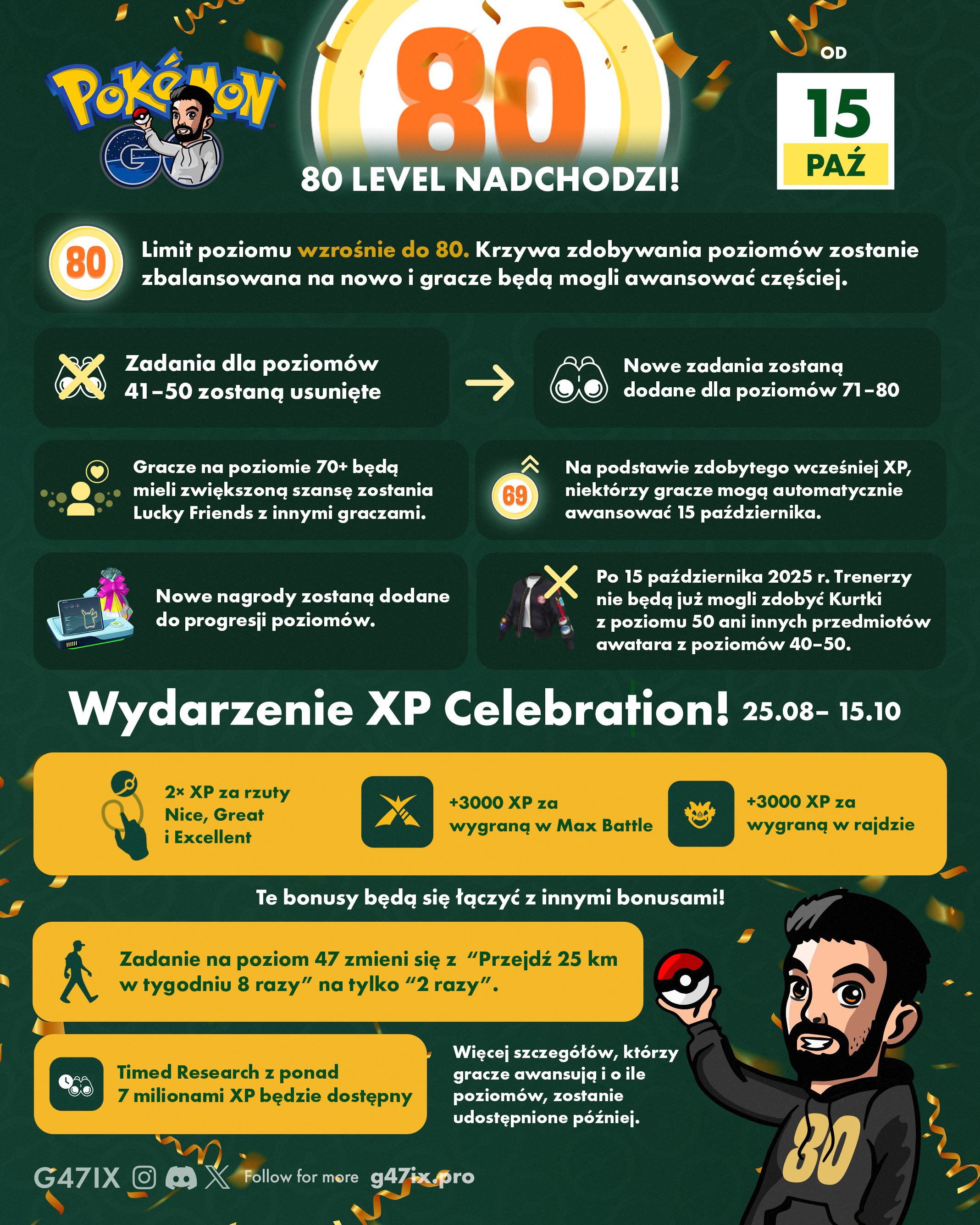 Przed nami ogromna zmiana w Pokémon GO! Już 15 października 2025 roku gra otrzyma aktualizację, która wprowadzi całkowicie przebudowany system poziomów. Najważniejszą nowością będzie zwiększenie maksymalnego poziomu z 50 do 80, a także wiele usprawnień, które mają sprawić, że zdobywanie kolejnych rang stanie się bardziej satysfakcjonujące.