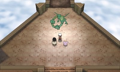Zaraz po pokonaniu Zinny u boku Rayquazy wzbijamy się w niebo, aby powstrzymać asteroidę lecącą w stronę ziemi. Po zniszczeniu jej pojawia się czarnych trójkąt, który po kilku chwilach okazuje się uśpionym Deoxys. Jeżeli znokautujemy tego poke-przybysza z kosmosu, możemy z nim walczyć jeszcze raz na szczycie Sky Pillar, ale dopiero po pokonaniu Elite Four.