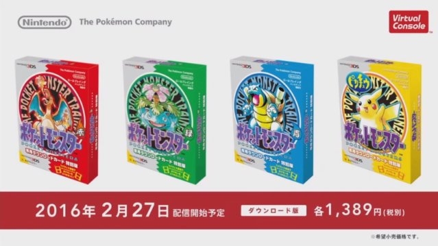 W ostatnim Nintendo Direct, ogłoszono, że oryginalne gry z pierwszej generacji Pokémon zostaną wydane na Nintendo 3DS Virtual Console. Ale oprócz tego, Japończycy otrzymają specjalną kolekcjonerską edycję, która będzie zawierała kod do pobrania gry. Edycje te, w wyjątkowych pudełkach będą zawierały także papierowy poradnik, mapę oraz magnes w kształcie kartridża. Na razie brak informacji, o tym by taka edycja mogła trafić do Europy.