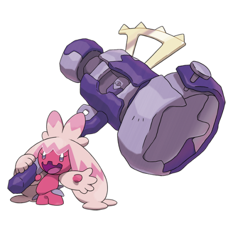 • Pokémon ten atakuje latające Corviknighty, wystrzeliwując w nie skały za pomocą swojego młota.