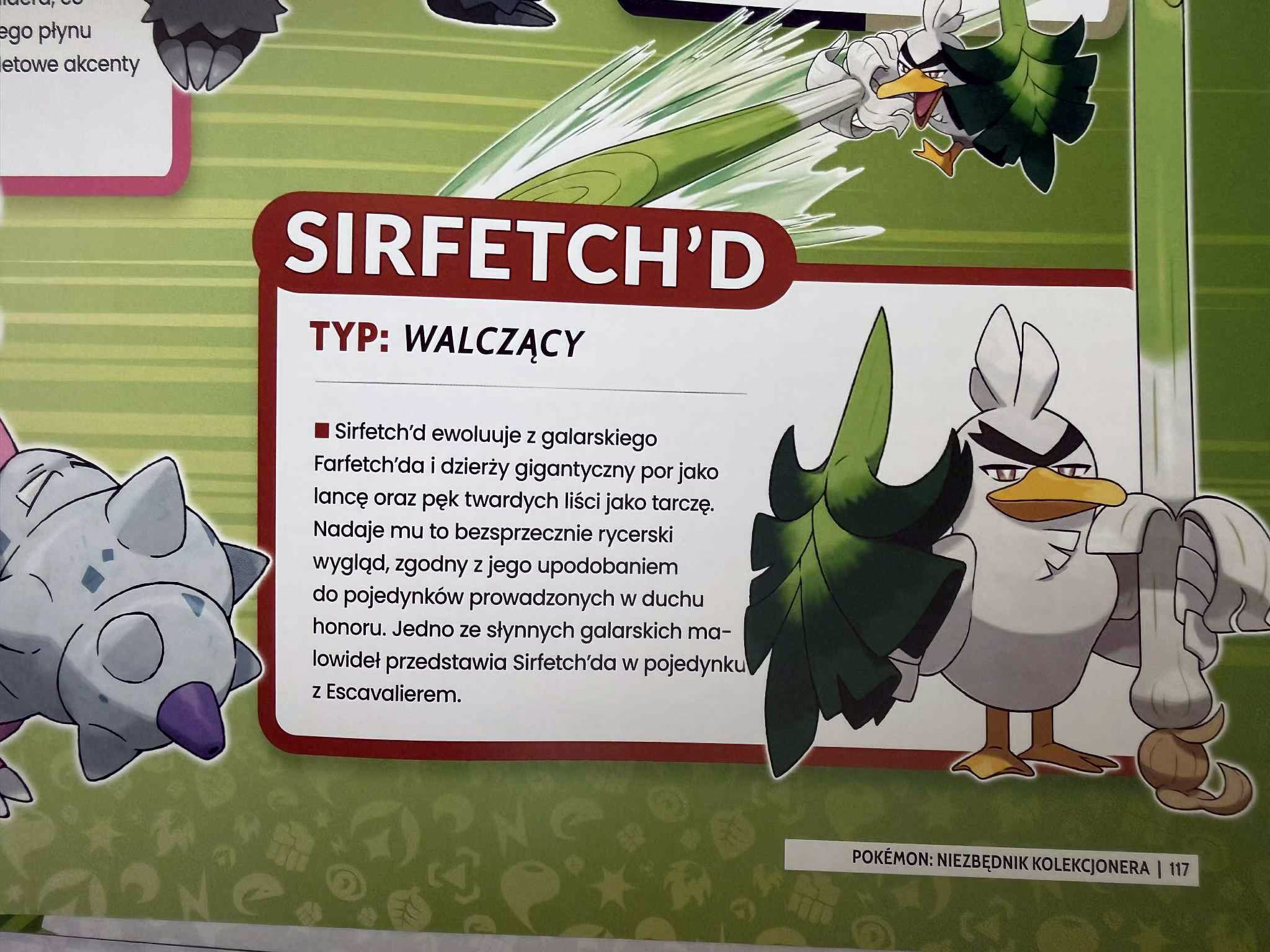 Tu wychodzi moje malkontenctwo fana: dobór kilkunastu szerzej opisywanych Pokémonów na region nie zawsze jest dla mnie oczywisty. Startery i legendy — wiadomo. Ale kiedy w Galar specjalny spotlight dostaje Toxtricity, a np. Cramorant już nie, to myślę: przydałoby się 5–10 stron więcej, by rozszerzyć te sekcje sylwetek. (oczywiście, ważne, że jest mój ulubiony Sirfetch’d!)
