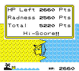 Na ekranie widoczny jest pasek HP, który działa jak licznik czasu, zaczynając od 6000 jednostek i stopniowo malejąc. Jeśli Pikachu spadnie do wody, pasek zmniejsza się szybciej. Gra kończy się, gdy Pikachu dotrze do brzegu lub gdy pasek HP spadnie do zera. Końcowy wynik to suma pozostałego HP i punktów zdobytych za akrobacje. W oryginalnej wersji gry najlepsze wyniki można było wydrukować za pomocą Game Boy Printer.