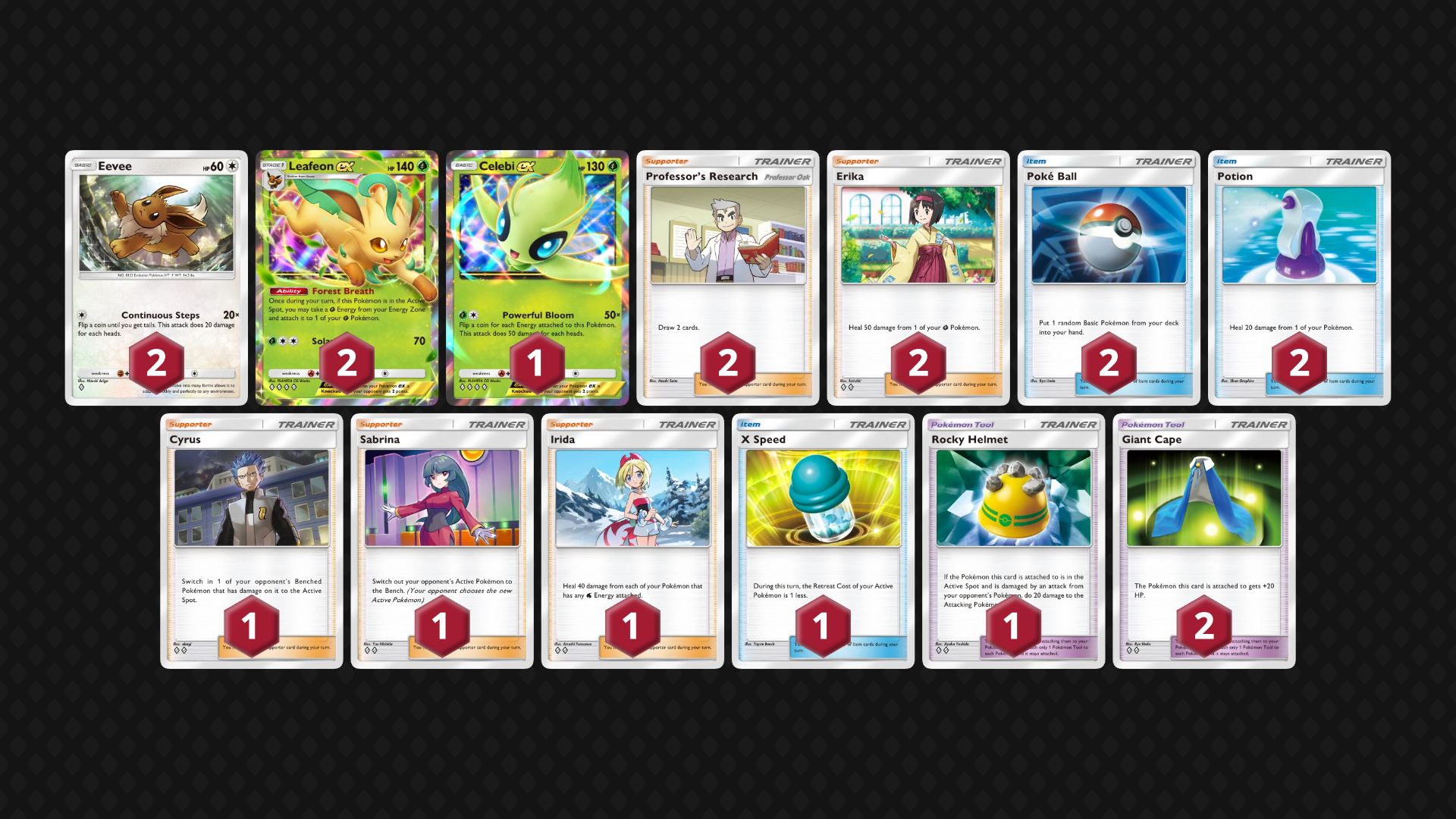 Talia oparta na trawiastych Pokémonach, które błyskawicznie generują energię. Leafeon ex pozwala na jej przypisanie prosto z Energy Zone, a Celebi ex wzmacnia swój atak Powerful Bloom w zależności od liczby nałożonej na niego energii.