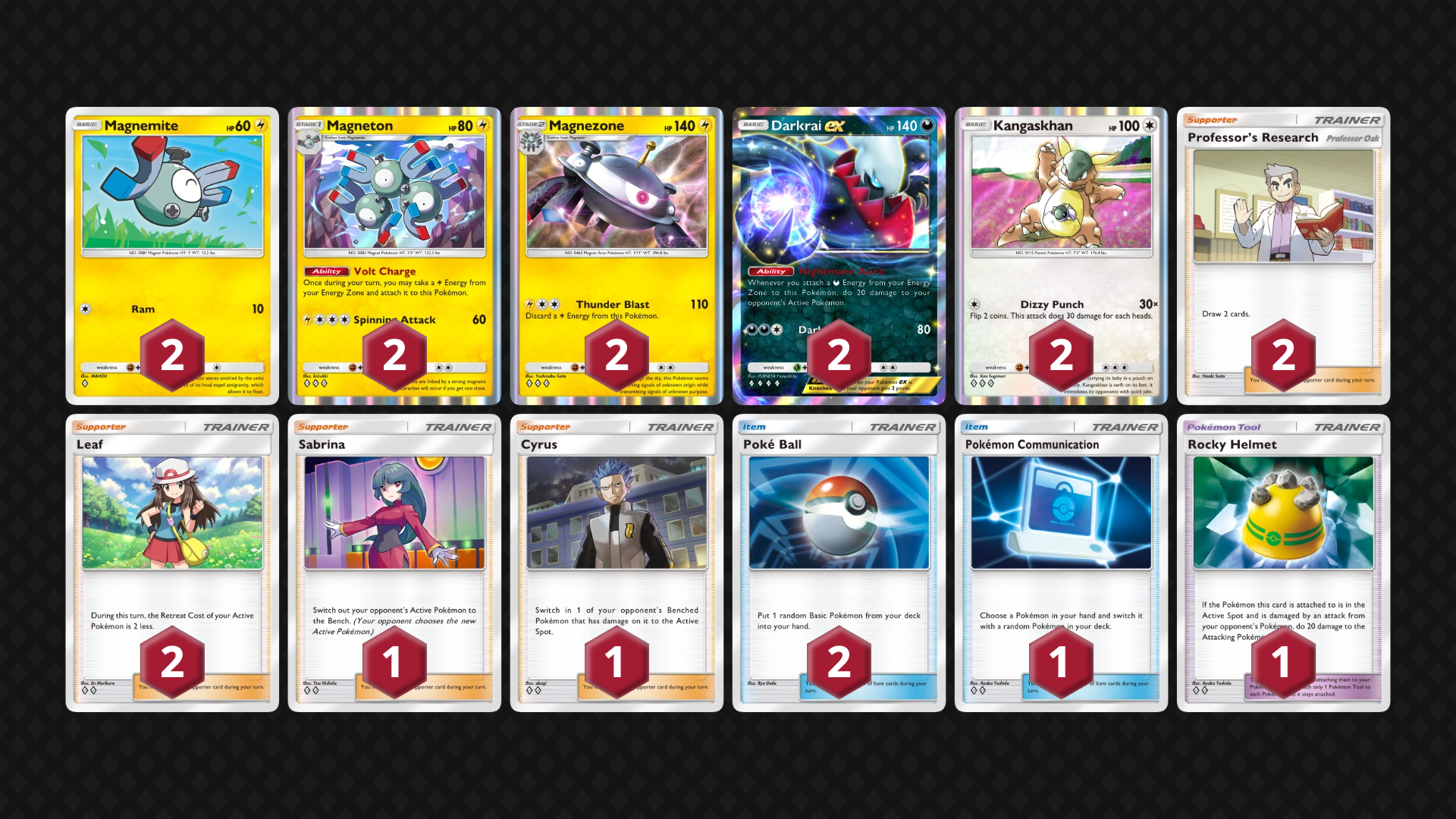 Połączenie Pokémonów Elektrycznych i Mrocznych daje świetny balans między mocą a strategią. Magneton pozwala na szybkie przypisanie energii, a Darkrai ex karze przeciwnika za każdy punkt energii w swojej strefie.