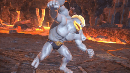 Machamp także otrzymuje mniejsze obrażenia od typów Dark i Rock co pozwoli nam na dłuższy czas stania oko w oko z Tyranitarem.